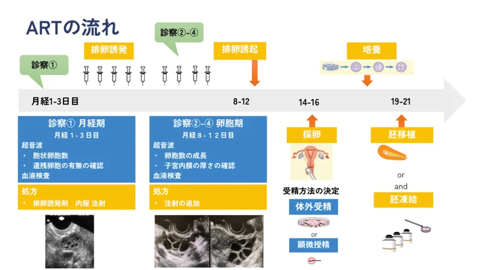 そのため一般不妊治療に比べて受診の回数が増え、4-6回程度の受診が必要となることが多いです。